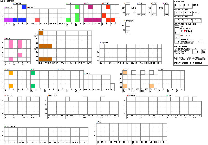 Also, I don't really play Touhou for score, but here's my high scores anyway (if one was achieved in a run not listed in the above table, then it's linked to here):